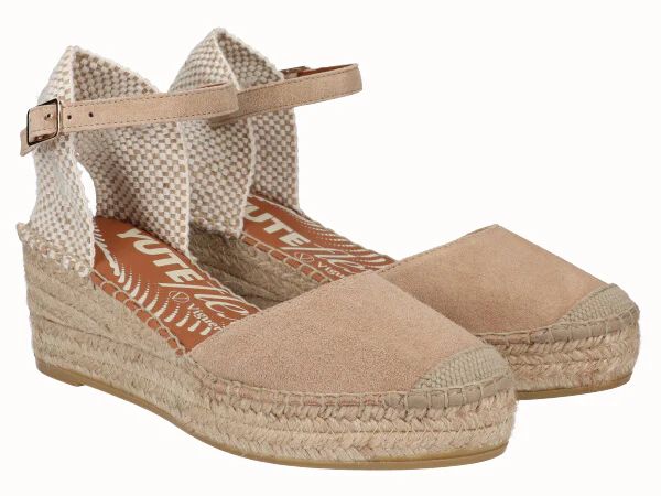 Еспадрили с 5,5 см клиновидна платформа от юта Yuteflex, леки и изключително гъвкави. Изработени от висококачествена естествена кожа, с подплатена гел стелка, каишка около глезена и закопчаване с катарама за оптимална стабилност. Със заоблен връх. Удобство, издръжливост и универсалност на 100% испански обувки. С гаранция за качество от Alpargatas Viguera.