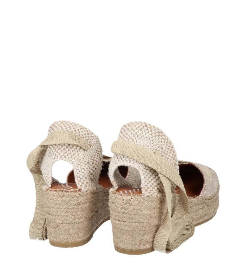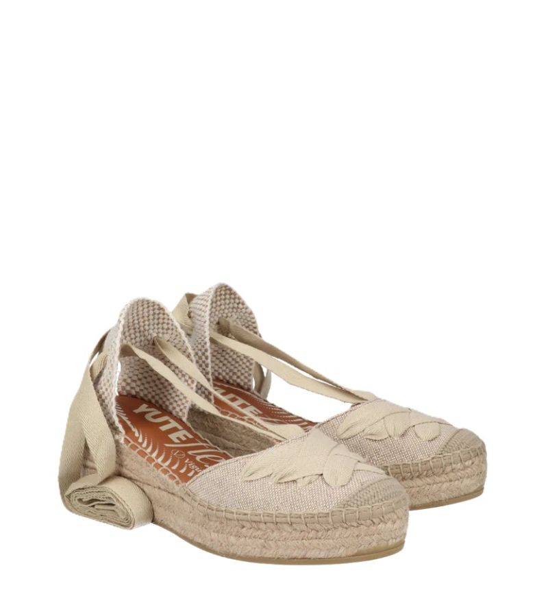 Валенсиански еспадрили с връзки в стил Гоя, с гъвкава ютена подметка с височина 5,5 см и платформа 1,5 см. Изработени от най-висококачествен памук със супер омекотена гел стелка. Комфорт, издръжливост и гъвкавост в 100% испански обувки. Подкрепени от гаранцията за качество Alpargatas Viguera.
