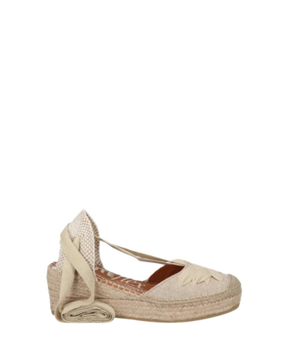 - Дамски бежови валенсиански еспадрили с връзки на глезена