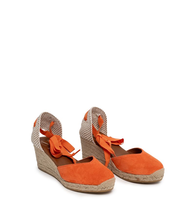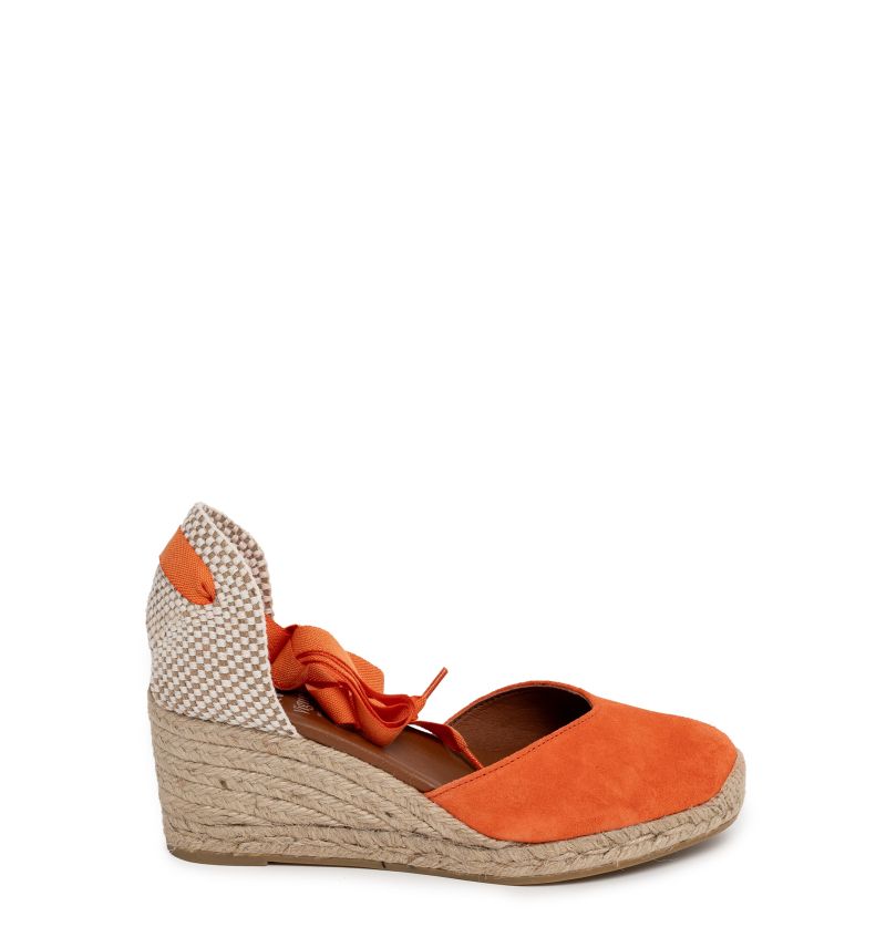 - Дамски оранжеви еспадрили с връзки на глезена