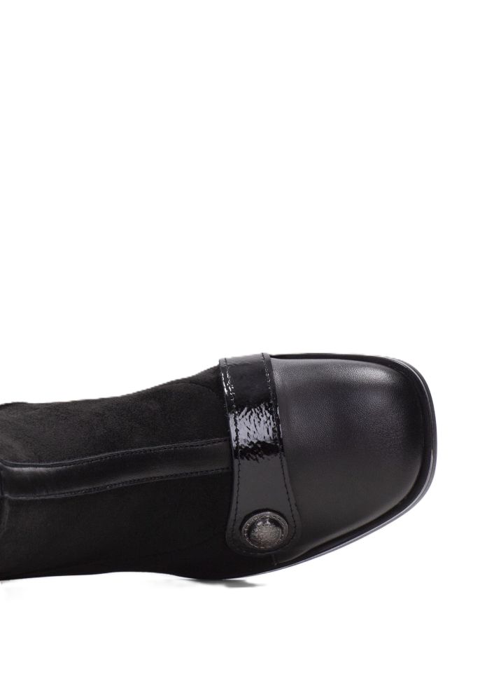 - Модел изработен от естествена гладка кожа отпред, мека лачена кожа отзад и еластична материя