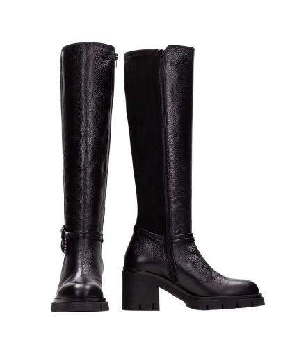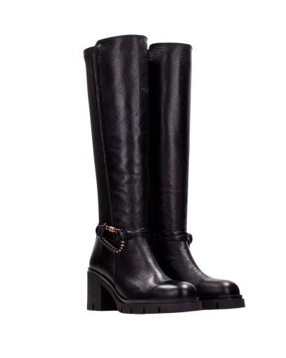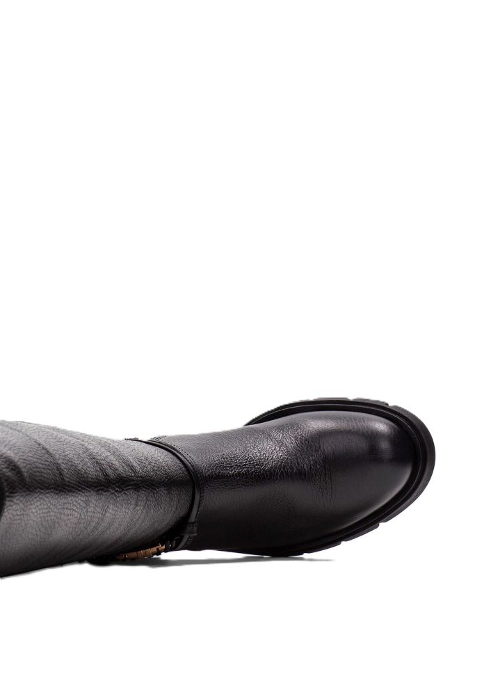 Дамски черни кожени ботуши HISPANITAS