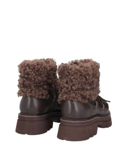 Тези тъмнокафяви боти с връзки са идеалният начин да се справите със студеното време, без да правите компромис с комфорта. Изработени от смес от гладка кожа и велур, те имат мека подплата с ефект на плюшено мече за уютно усещане. Имат странично закопчаване с цип и декоративни връзки, което гарантира бързо и лесно обуване.