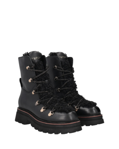 • Дамски кожени боти с вълна с ефект "плюшено мече"