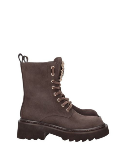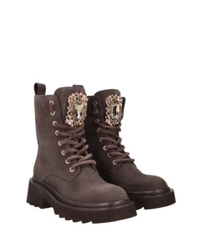 Тези универсални, изключително стилни боти от велур са най-желаното облекло за зимния сезон. Изработени в тъмнокафява цветова гама, те са украсени с ефектен камък отпред. Тези боти са идеалният начин да посрещнете зимата със стил и увереност, а подметката им осигурява изключително сцепление и несравним комфорт на всякакви повърхности.