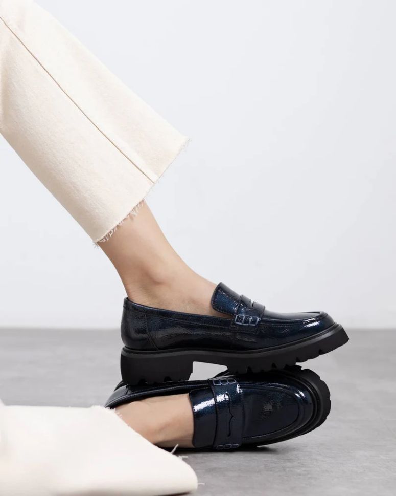 Дамски тъмносини мокасини лак CARMELA