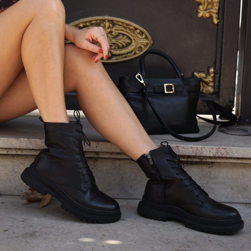 Дамски кожени анатомични боти, изработени от мека естествена кожа, с връзки и цип за перфектно прилягане.