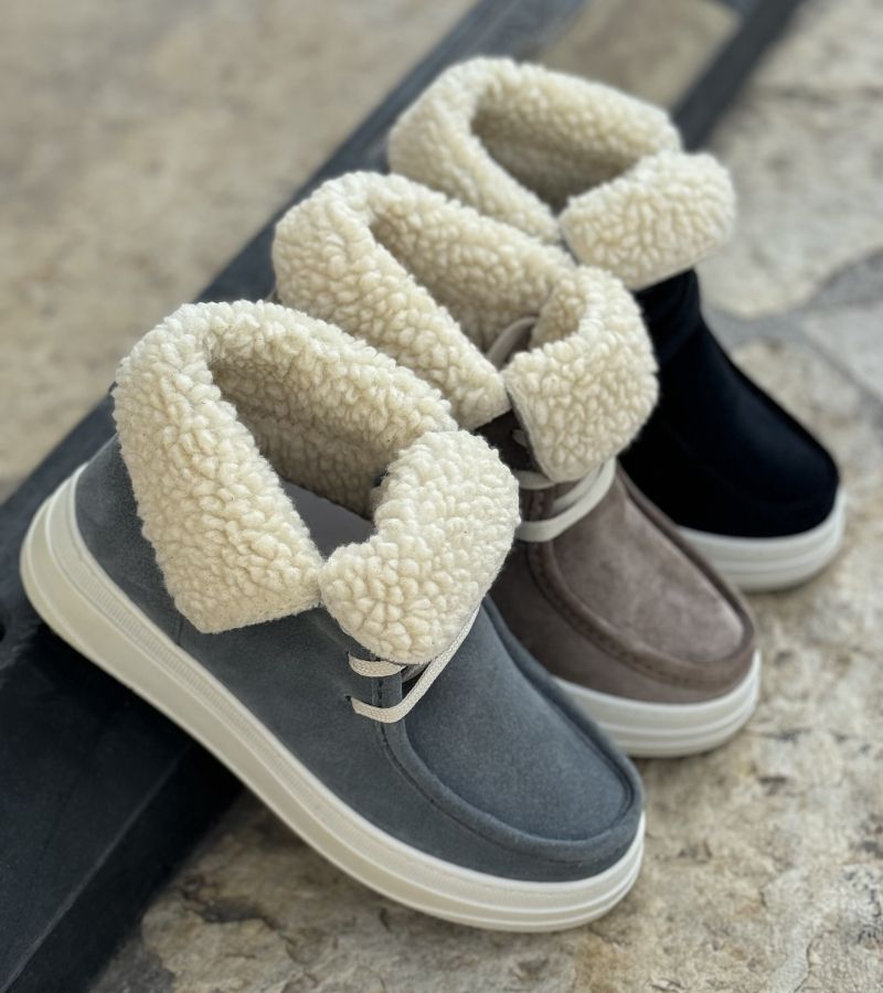 Дамски велурени анатомични боти с връзки и чудесен топъл и удобен пух отвътре!