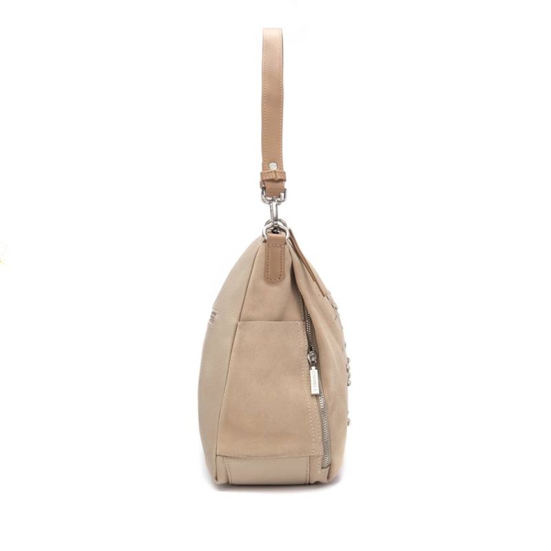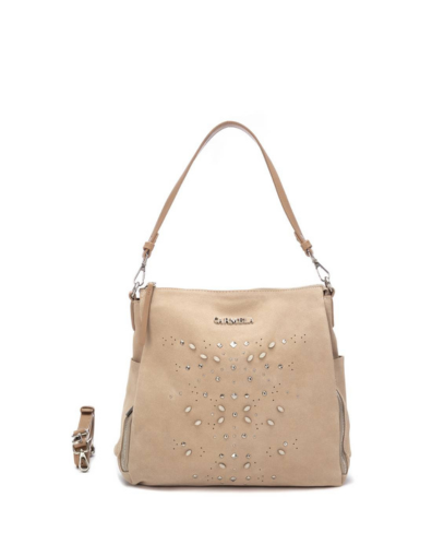 • Дамска чанта, изработена в комбинация от велур и шагренирана кожа