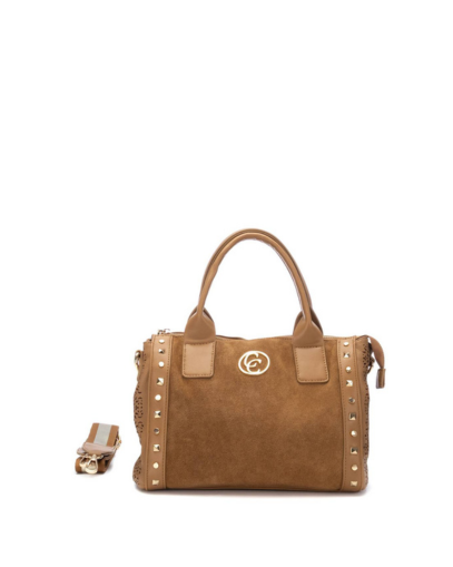 - Дамска чанта, изработена в комбинация от велур и шагренирана кожа