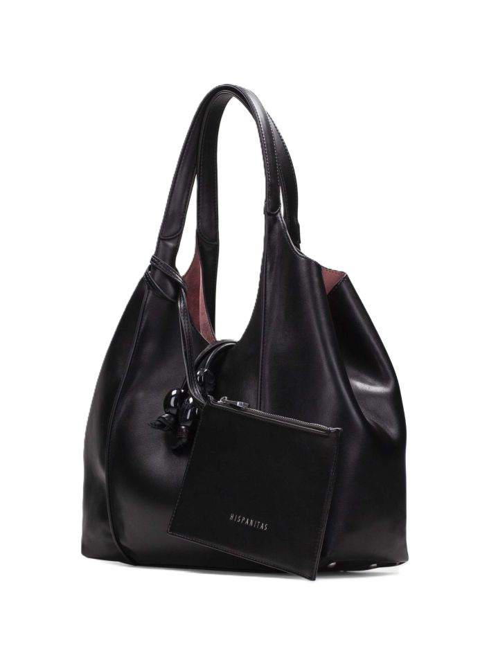 Дамски черна кожена чанта HISPANITAS