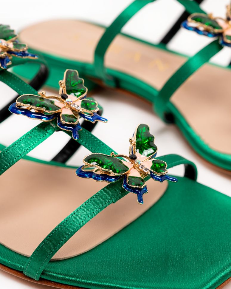 • Дамски зелени чехли с брошки