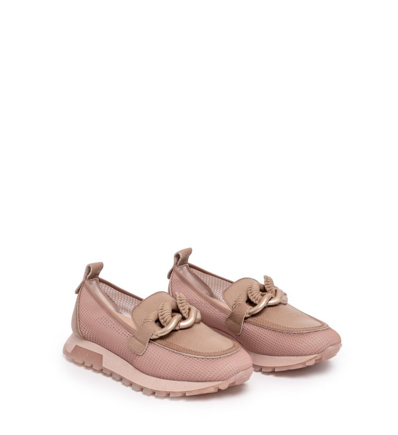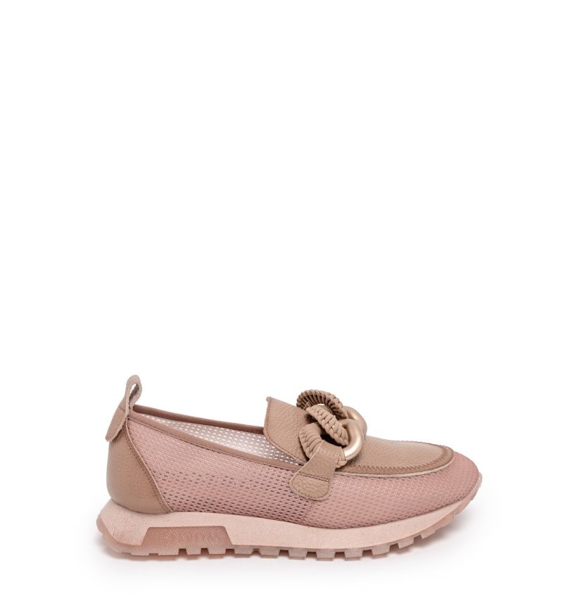- Спортни мокасини с аксесоар, изработени в комбинация от кожа и мрежеста материя