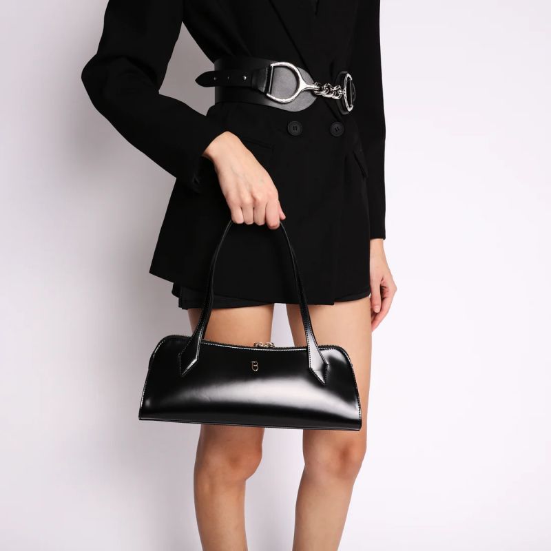 За новата си колекция Tosca Blu представя тази изискана и незаменима черна чанта за през рамо. Изработена от мека, полугланцирана кожа, тя се откроява с хоризонталния си силует. Закопчава се с цип, а минималистичният ѝ дизайн е украсен със златно метално лого отпред. Тази чанта за през рамо е идеална за тези, които обичат да се открояват с класа: емблематичен аксесоар, предназначен да подчертае вашата женственост.