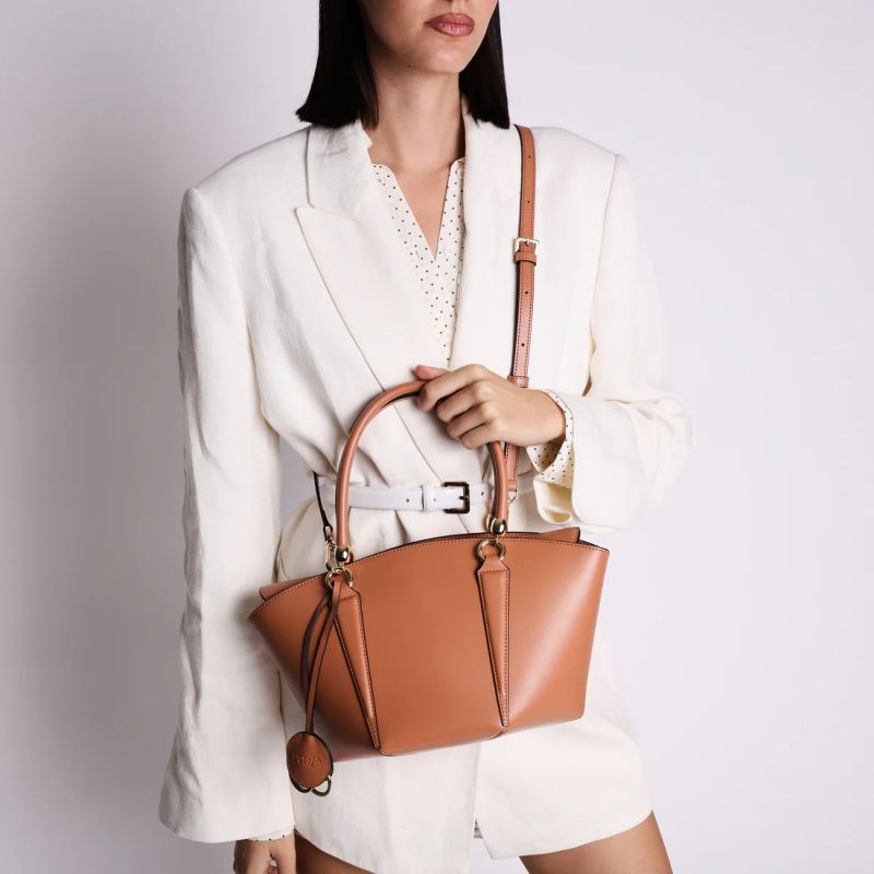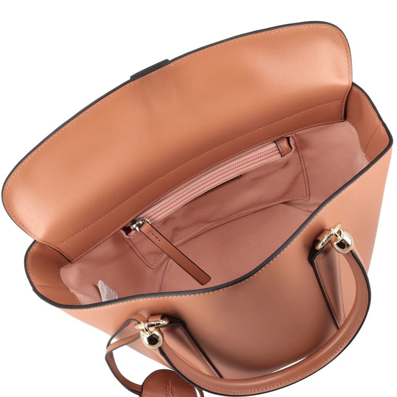 Tosca Blu създава тази кожена чанта в цвят камел, идеална за добавяне на нотка изтънченост към вашите тоалети. Разполагаща с едно отделение с магнитно закопчаване с копче, тя е украсена с оригинален монограмен медальон - отличителен детайл, който подобрява дизайна и подчертава идентичността на марката. Благодарение на практичната регулируема и подвижна презрамка, можете да носите чантата в ръка или през рамо.