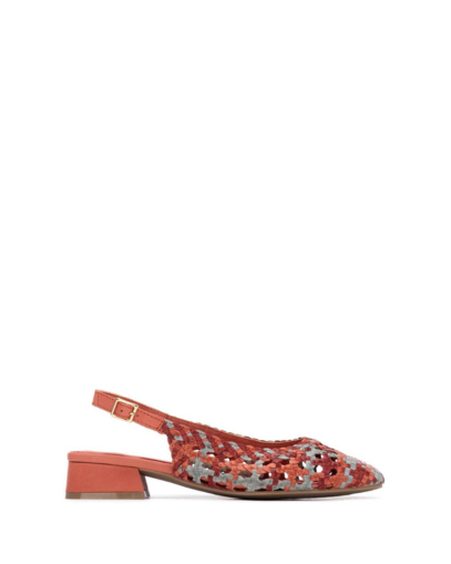 - Модел с отворена пета, изработен от плетена естествена кожа