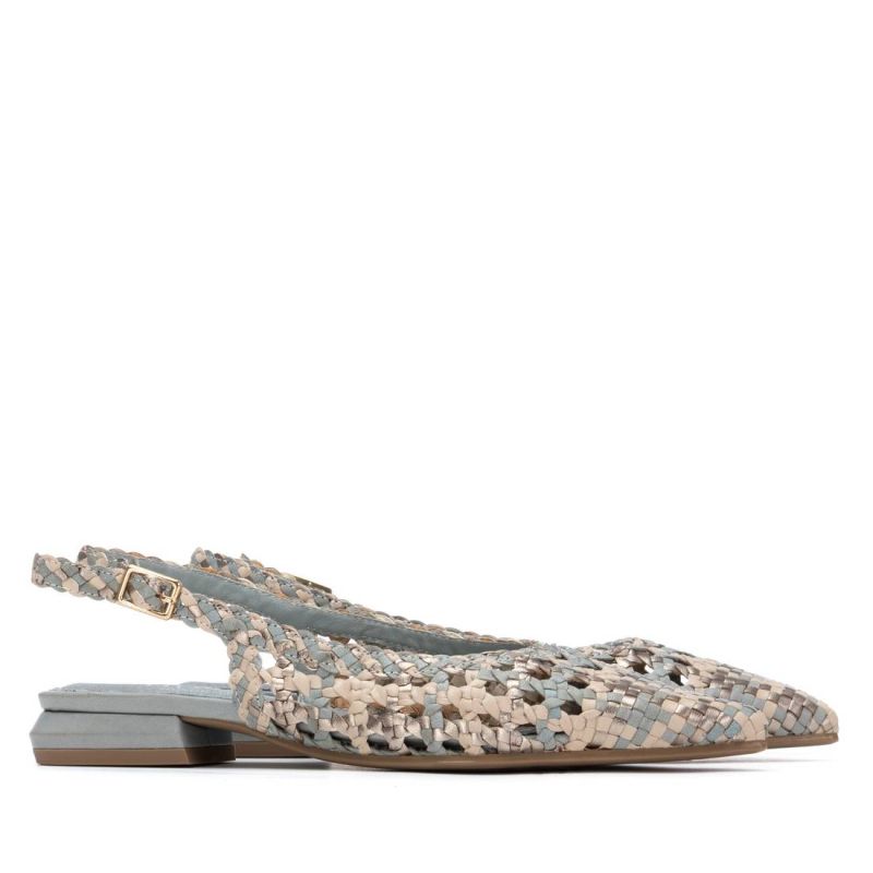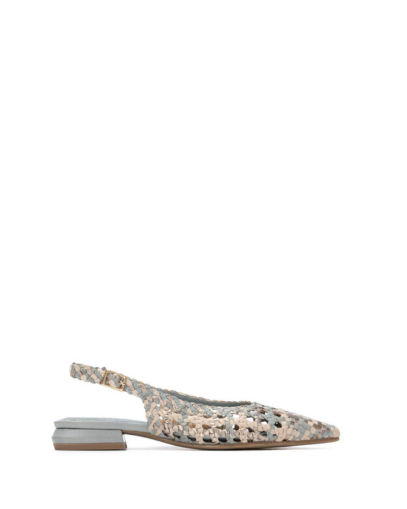 - Модел без пета, изработен от плетена естествена кожа