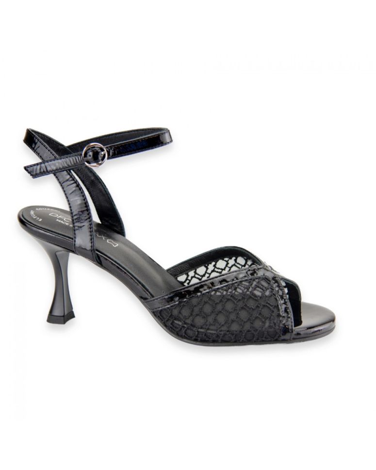 • Модел, изработен от лакирана естествена кожа и мрежеста материя